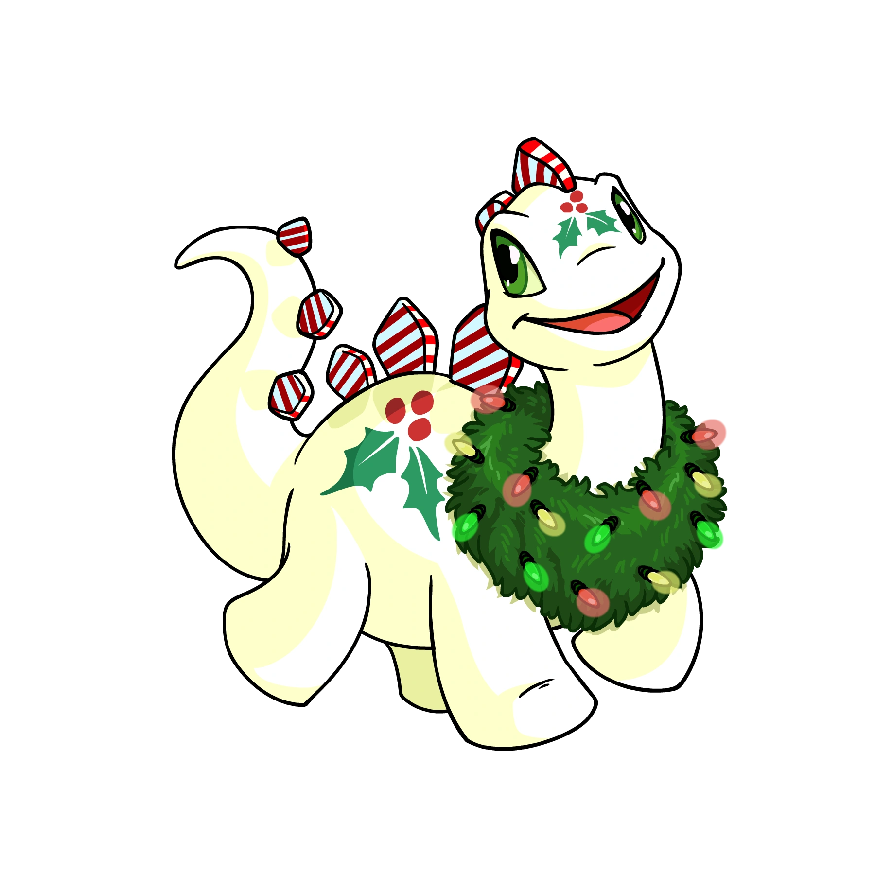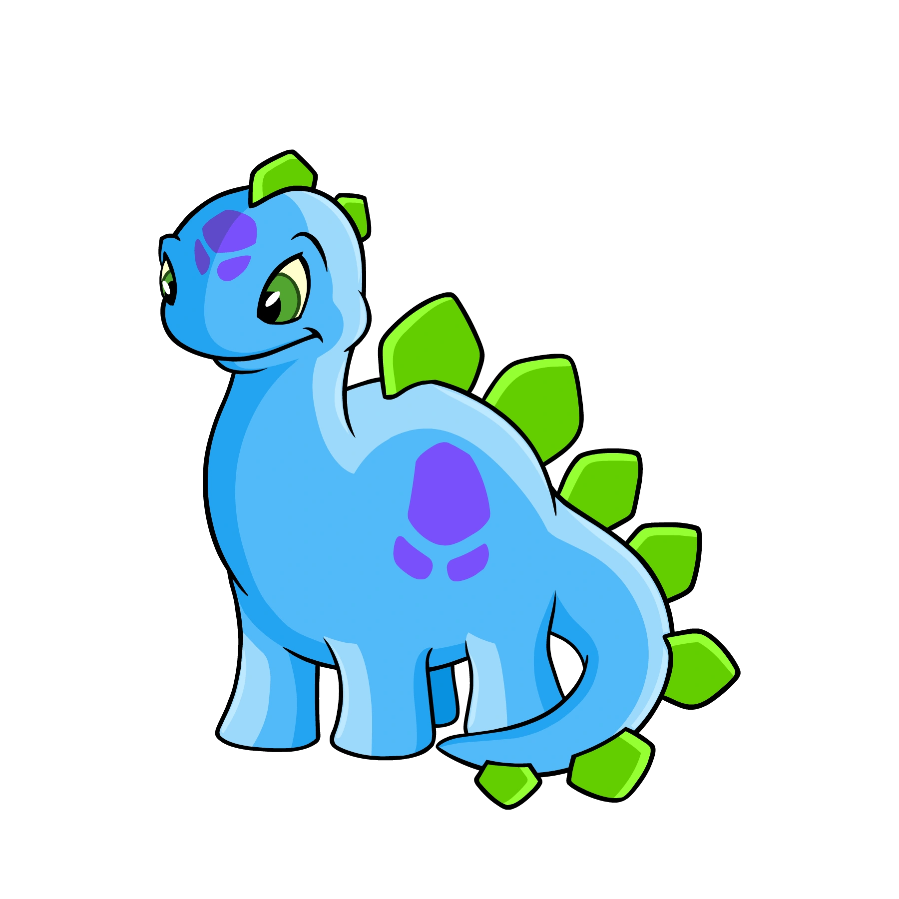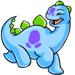 The Chomby (chom-bee) is a shy Stegosaurus/Brachiosaurus-like Neopet originating from Tyrannia. Legends say that because of the Chomby's large appetite, Tyrannia became visible to the rest of Neopia. The Chomby's favourite foods are Cactus Blossoms and Terry Berries, but have a deep hatred for fungus balls.