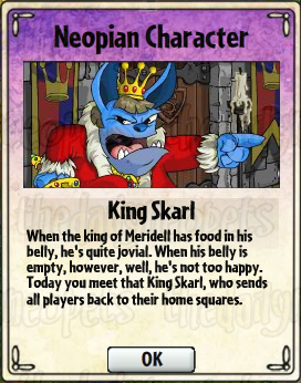 King Skarl is a grumpy BlueSkeith who is the king of Meridell, being well known for "leading Meridell successfully through two terrible wars". He is a rival to his brother, King Hagan of Brightvale.
