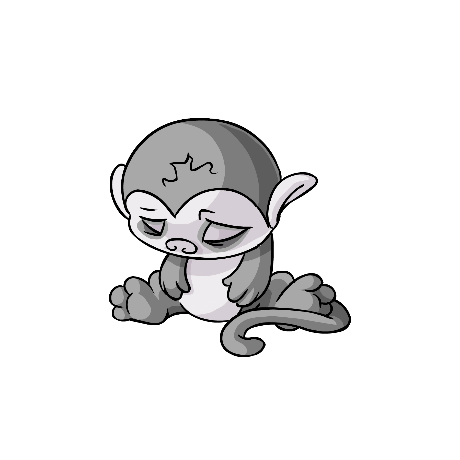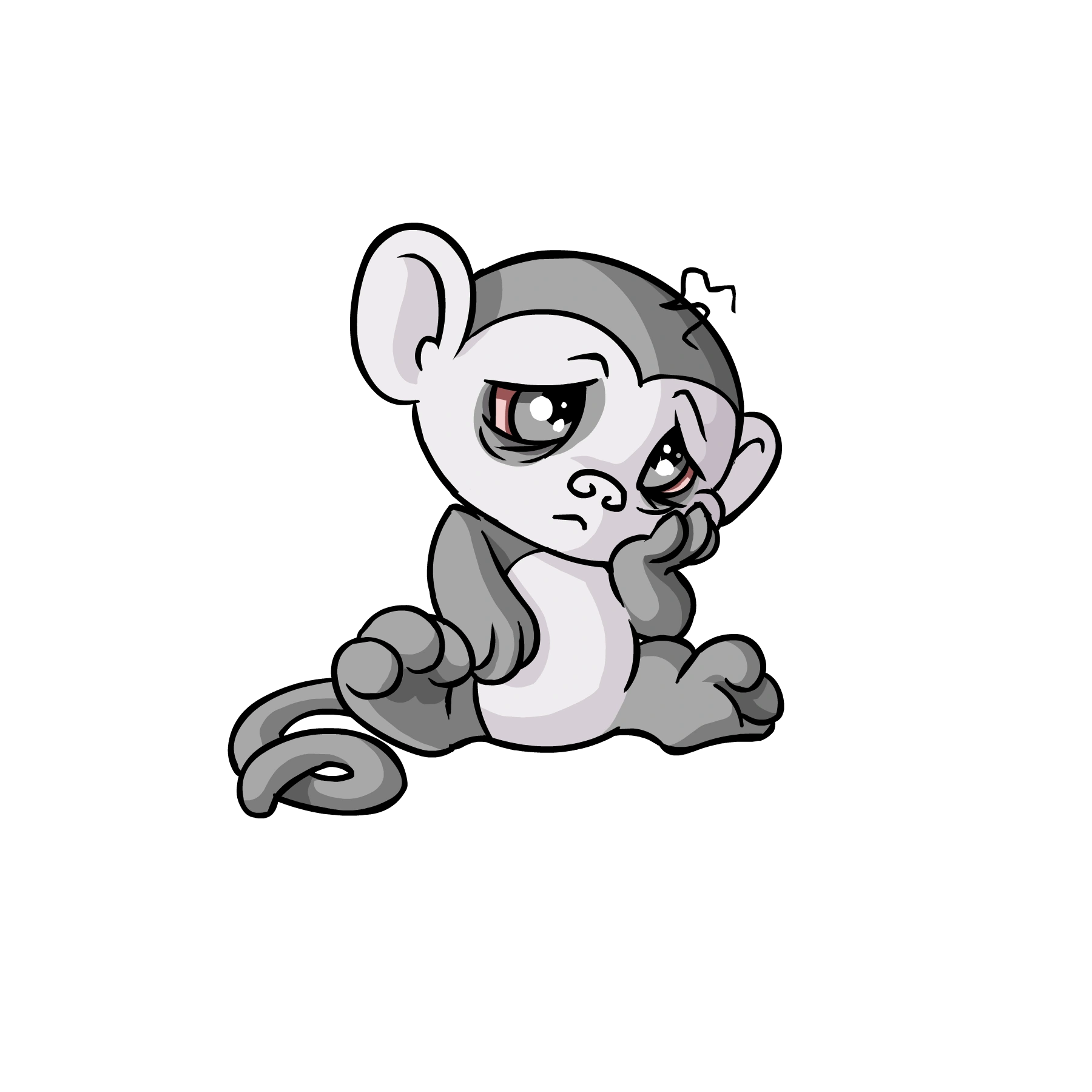 The Mynci was first introduced as Mellish, a humanoid pet based on one of Adam's friends. When the pet was renamed and redesigned to resemble a monkey, the Mynci inherited its hair tuft and freckles from Mellish. The next time it was redrawn, the Mynci had its Mellish features removed, became shorter, and had its tail curled up in a prehensile shape. The Mynci's final pre-conversion redesign on 26th April 2005 gave the Mynci more dimension and a sneakier appearance.[4]