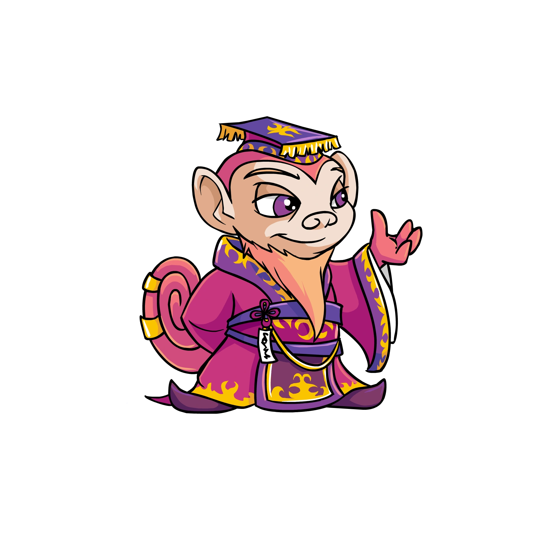Myncis (MOON-see) are monkey-like Neopets. Residing in the dense jungles of Mystery Island, their natural agility, sturdy grip and sense of balance make them great climbers. Although they tend to pull pranks on other Neopians, they also steer clear of real trouble. Myncis also adore fresh fruit, especially bananas (and its Neopian variations).