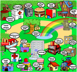 " Neopia Central is the bustling hub of activity in Neopia, and houses the main cluster of shops. If you're looking for a certain item, there's a good chance you'll find it in Neopia Central! "