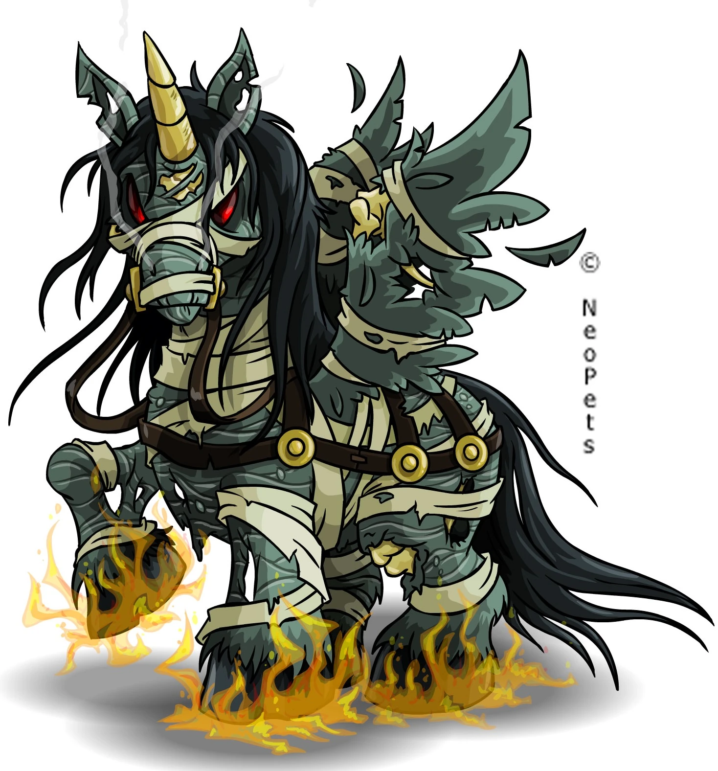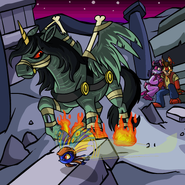He sometimes appears in disguise as a Blue Uni. The Nightsteed first appeared in the Lost Desert Plot, and is the loyal companion to Jazan. When Qasala got turned into undead monsters the Nightsteed was part of this, however he was unable to escape the curse. Nightsteed however he hardly minded it saying he had gotten used to his appearance.