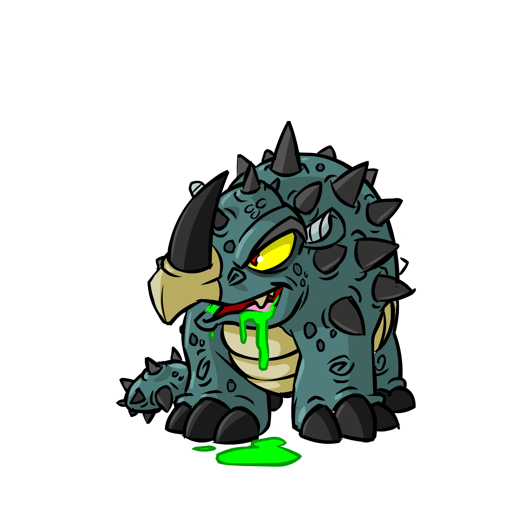 "Tonus can be found peacefully roaming the wilderness of Tyrannia. These cheerful Neopets are known for having fluffy manes and imposing horns in the middle of their heads. They enjoy running rampant and playing ball games, sometimes causing delightful chaos. As expected, they have gigantic appetites that need to be checked." [6]